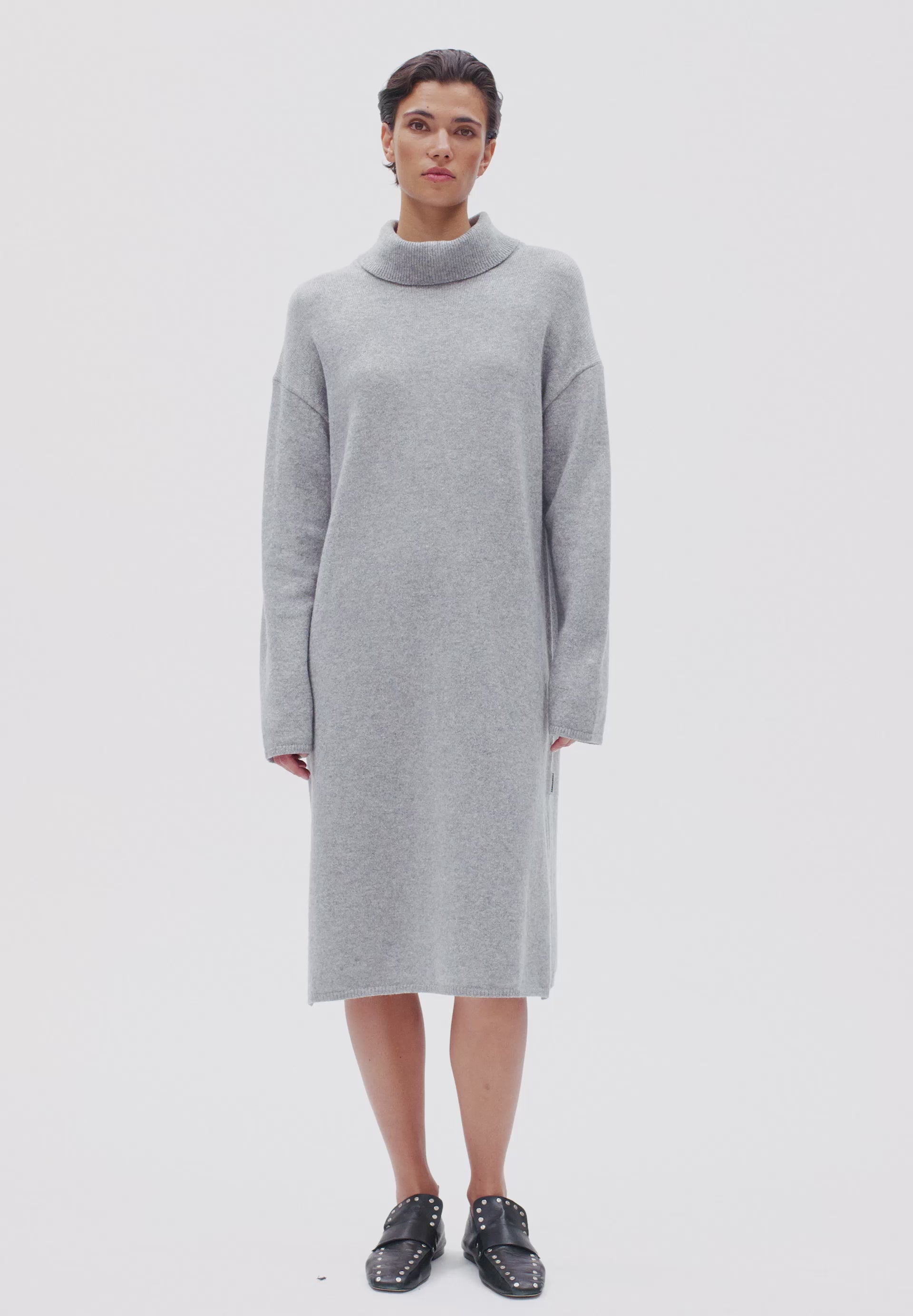 Unser ARADIAA Strickkleid mit Rollkragen hat einen weiten, bequemen Schnitt und endet unterhalb des