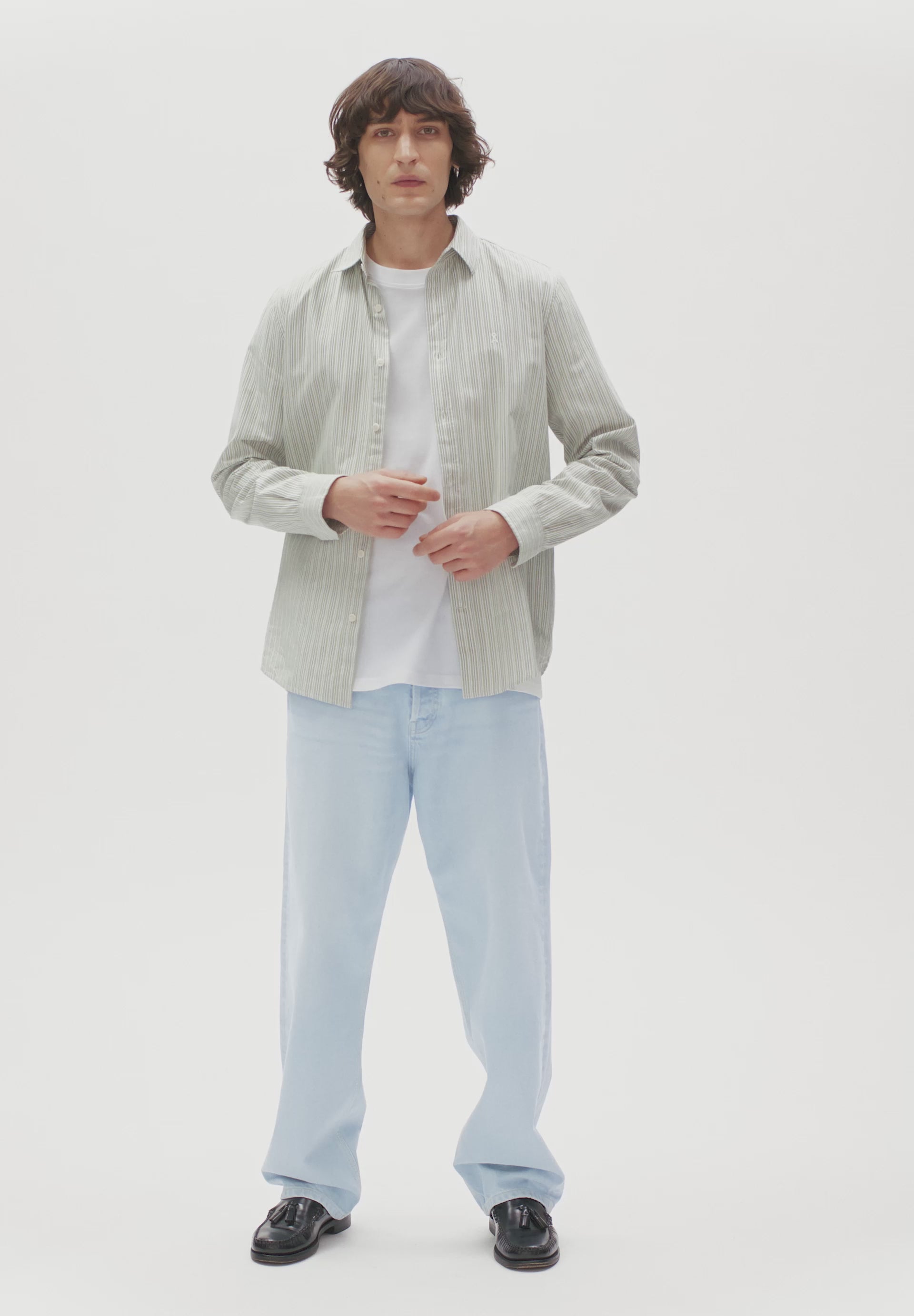 Das GESTREIFTE LANGARMHEMD ist locker fallend geschnitten und zeigt sich mit klassischem Hemdkragen. Das