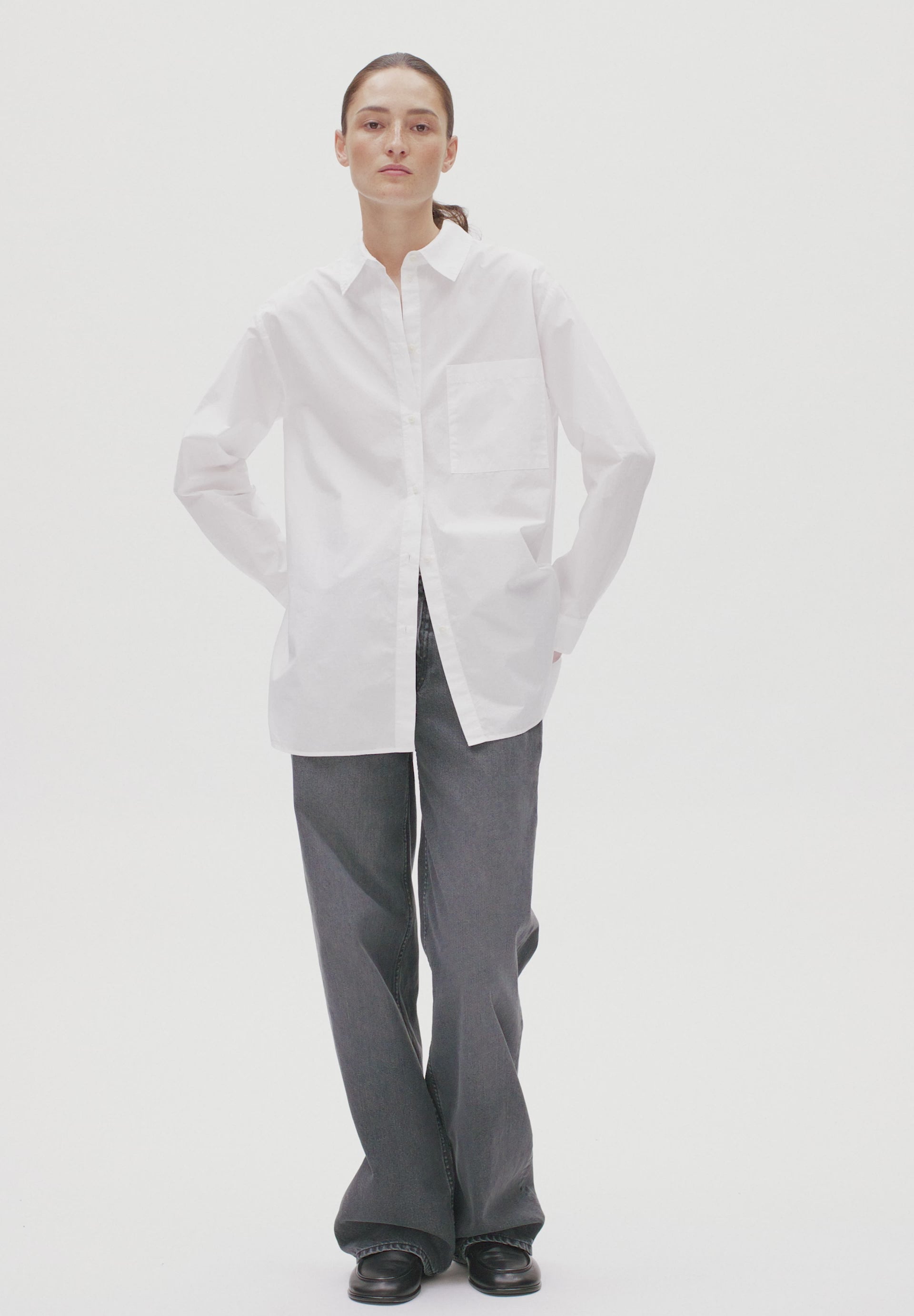 - Kraag: overhemdkraag