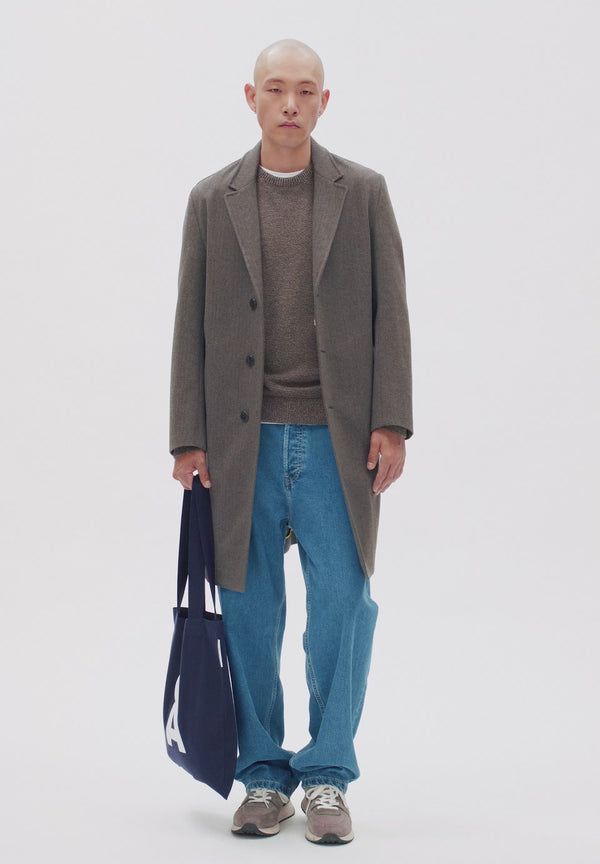 Unser neuer PAABLO Mantel aus 100% recycelter Wolle hat einen zeitlosen Look mit Stehkragen und Paspeltasche.